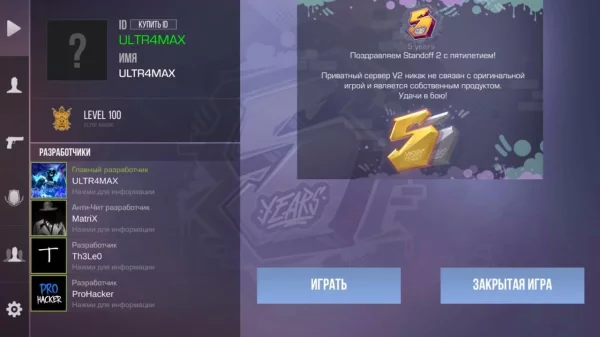 Приватка V2 – один из самых известный приватных серверов для мобильного шутера под названием Standoff 2. Игра сохранила весь контент, возможности и основы геймплея, но в данной версии вас ждет больше свободы. Игрокам не придется тратить много времени на получение валюты или расставаться с реальными деньгами, чтобы обзавестись ценными игровыми предметами. Весь контент на приватке доступен с самого начала после первого запуска на телефоне!
