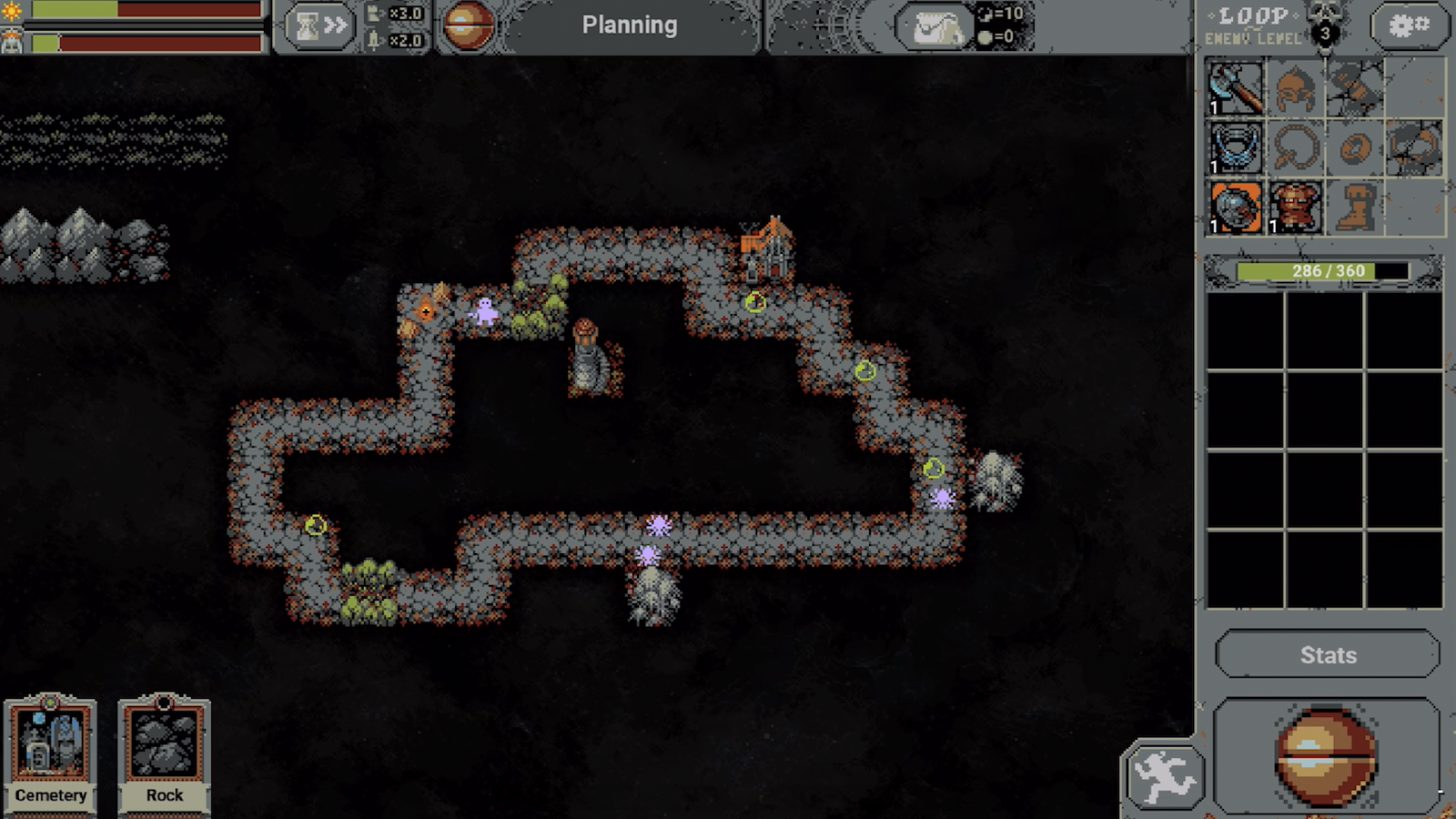 В первом случае Loop Hero предлагает пройти несколько уникальных локаций и победить боссов. Только так можно избавиться от проклятья. При победе над соперником вы переходите к следующей главе, а при поражении возвращаетесь в лагерь. Вкладывайте ресурсы в развитие и отправляйтесь в новых поход. Чтобы не заскучать, постоянно экспериментируйте с классами – выбирайте рыцаря, воина, вора, мага, некроманта. Для каждого из героев предусмотрены отдельные виды оружия, брони и даже целые стратегии прохождения.