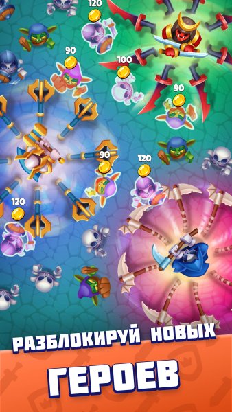 - Уникальные герои с разным оружием;