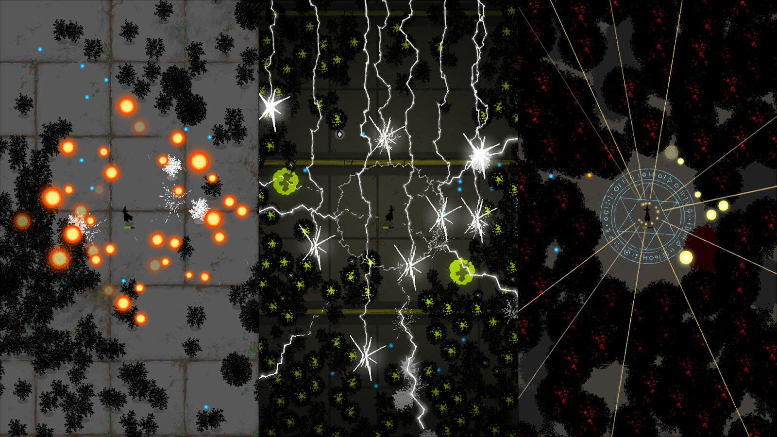 Игра основывается на механиках и правилах нынче популярной Vampire Survivors и ее аналогах в жанре. Вы просто бегаете по бескрайнему и незамысловатому уровню, а персонаж автоматически бьет врагов или выпускает в них заклинания с определенной периодичностью. Собирайте очки опыта и при каждом повышении уровня выбирайте из случайно предложенных способностей или апгрейдов. Старайтесь собирать комбинации стихий, чтобы повышать урон по врагам и накладывать различные дебафы – снижение брони, замедление, заморозка, поджог и так далее.