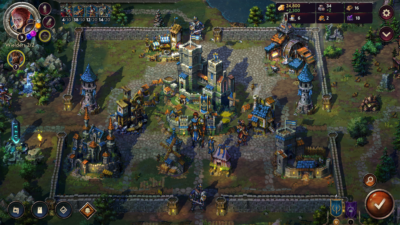 В битвах между армиями геймплей полностью преображается. Songs of Conquest Mobile, как и классика жанра, предлагает соревноваться на маленьком поле, поделенном на сектора для расстановки юнитов. Каждая фигурка – это целый отряд с указанным количеством солдат или существ. Ходите по очереди с врагом, используйте ландшафт в свою пользу, применяйте заклинания и молитвы главного героя. В одиночном режиме представлено 4 сюжетные кампании за разные замки. В сетевой игре можно сразиться на случайно сгенерированной карте с ботами или реальными игроками.