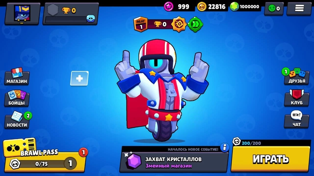 Взломанный Brawl Stars 1000000 гемов