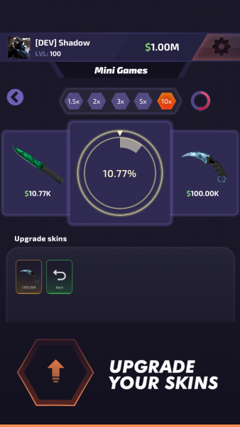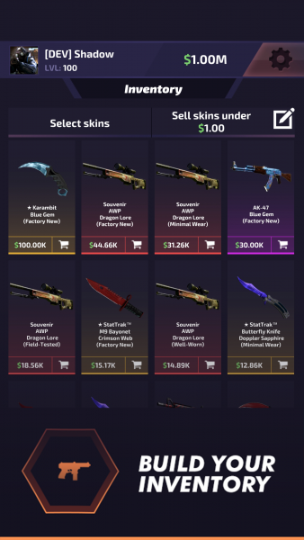 В новой Case Battle: Skins Simulator оставлена только главная механика шутеров. Вам не придется тратить время на унылую стрельбу, поиск соперников, рейтинговые матчи, оттачивание навыков и заучивание карт. Достаточно зайти в симулятор, накупить кейсов и наслаждаться рулеткой. Собирайте скины, пополняйте инвентарь и торгуйте с другими игроками. Проходите мини-игры ежедневно, чтобы получать валюту или ценные предметы. Собирайте бонусы, чтобы повышать шанс выпадения редких вещей. Все скины и украшения можно детально рассмотреть на конкретном оружии в 3D-режиме.