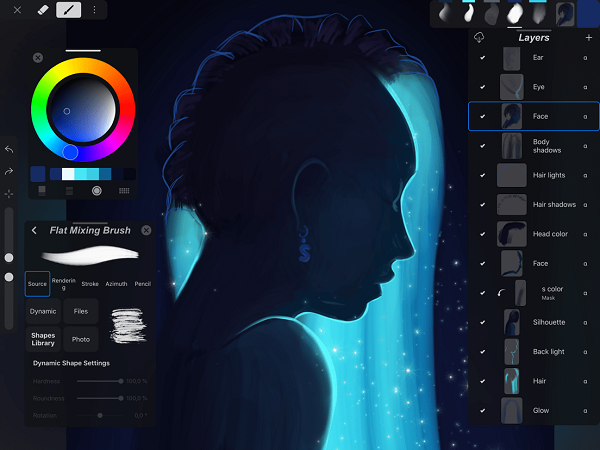 Благодаря функции работы со слоями процесс рисования значительно упрощен. Так, можно разбить работу на детали, прорисовывая каждый элемент.