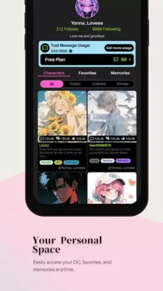 Crushon AI со встроенным модом снимает все ограничения и убирает необходимость подписки для большинства функций:- Нет ограничений на количество сообщений в день;