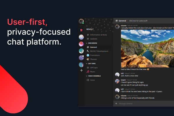 Revolt делает упор на безопасность и конфиденциальность. Пользователи могут быть уверены в том, что их данные и файлы не попадут в руки третьим лицам. При этом, сервис остается абсолютно бесплатным – без рекламы, подписок и различных апгрейдов статуса аккаунта.