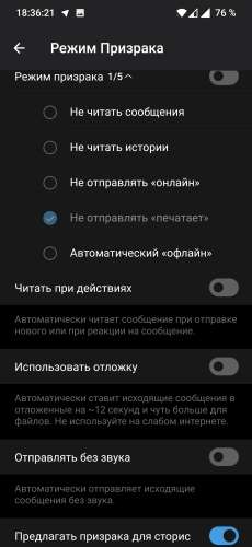 - Режим невидимки для всех собеседников;