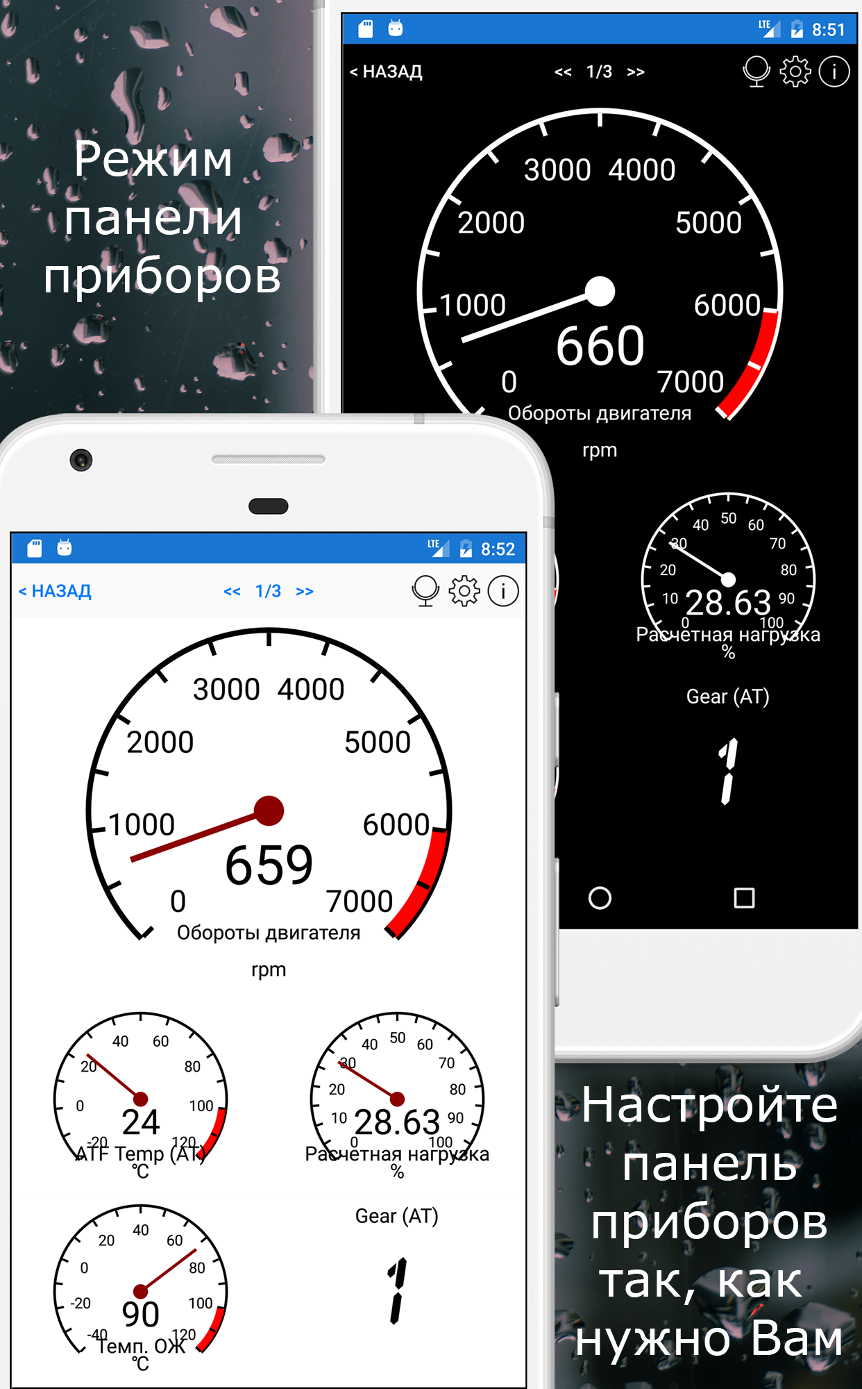 - Поддержка всем автомобилем, совместимых с OBD2;
