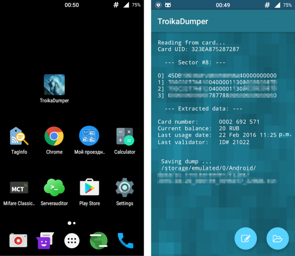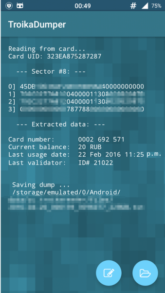 По тем или иным причинам "Тройка" может не оказаться рядом в нужный момент. Для таких ситуаций и создано приложение-дампер, которое сканирует вашу карту и сохраняет информацию о её состоянии — дамп.