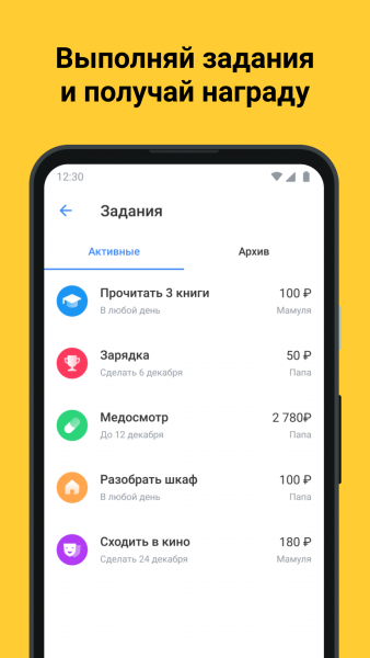 Также есть и такая креативная фича, как задания от родителей. Выполняя их, можно получать вознаграждения. У взрослых такой штуки нет!