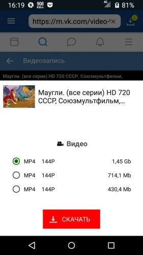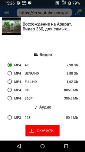 Видео доступны для скачивания в различных разрешениях. Так, вы можете экономить свой трафик, скачивая видеоролики в низком качестве, либо же разгуляться на полную и загрузить высокое разрешение, но с большим весом. Конечное количество занимаемой памяти вы сможете увидеть еще до начала загрузки, что избавляет от неожиданностей.